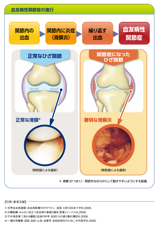 はじめに │ 血友病とは │ 血友病の特徴 │ 血友病の症状 │ 血友病性関節症 │ 血友病の検査 │ 後天性血友病