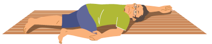 仰向けになり、片手を上げます。手を上げた反対側に足を図のように持っていきます。
